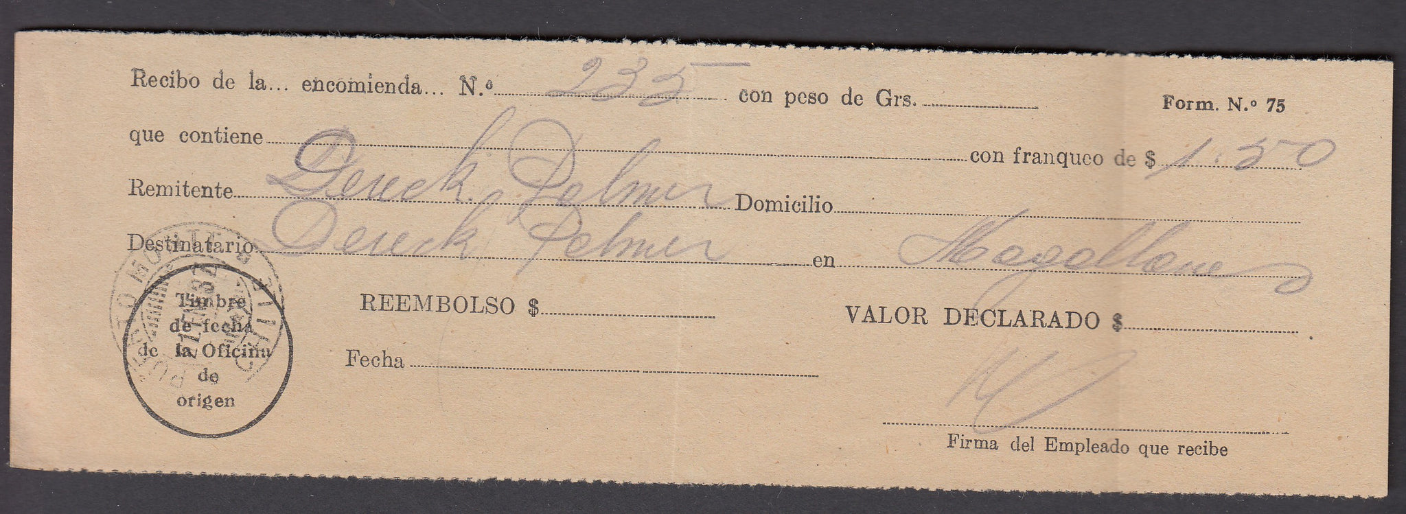 The inaugral flight from Santiago to Magallanes took place on 20th January 1937 via Puerto Montt, where this cover joined the flight (a Sikorsky seaplane) the following day. Includes the sender's receipt for $1.50. Magallanes receiving stamp to reverse.