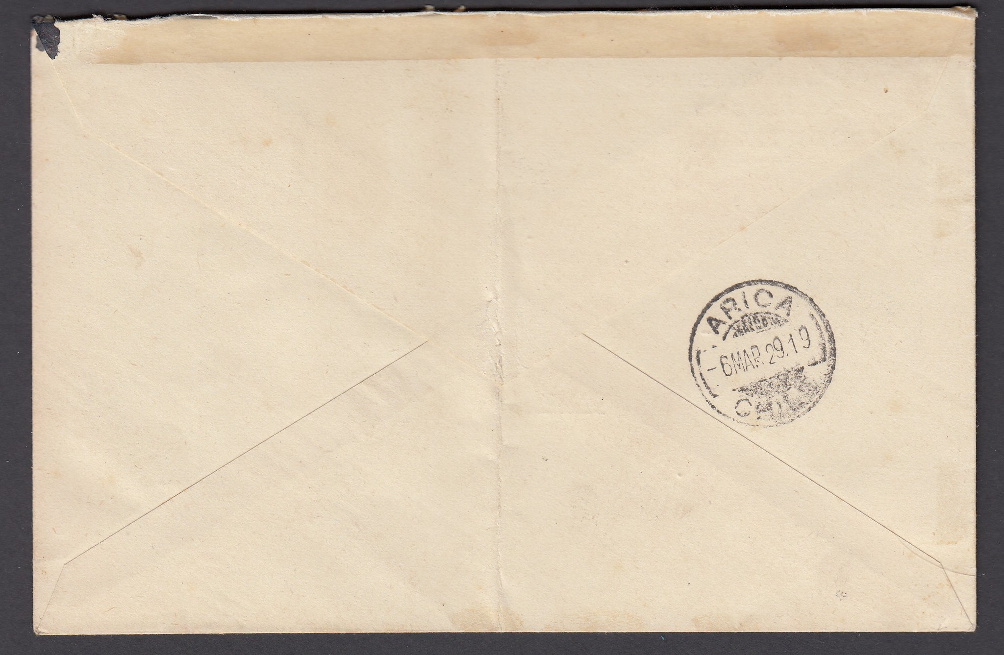 March 5th 1929 Santiago CDS with Arica receiving stamp to reverse. Period clipping from the South American Journal accompanies.